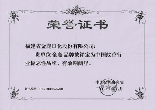 授予金鹿牌盤香為中國名...