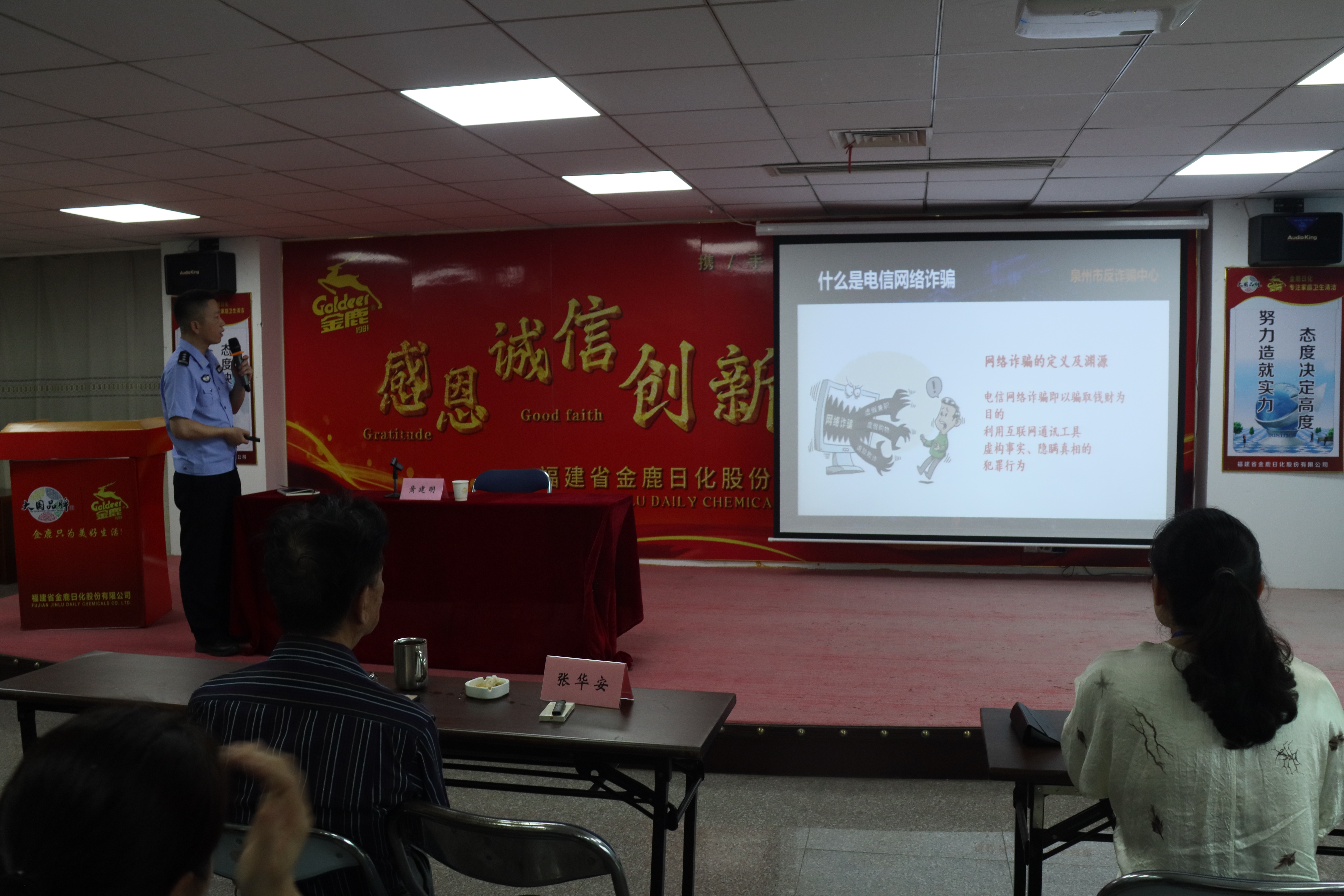 反詐知識進企業  共筑安全防線為進一步提高企業員工防范電信網絡詐騙的意識和能力,切實保障人民群眾的財產安全,5月27日下午,洪瀨派出所所長黃建明、副所長李志鋒帶隊蒞臨金鹿集團,開展了“千名所長講反詐”系列講座。黃所長首先向各部門代表介紹了當前電信網絡詐騙的形勢和常見手段。通過講解...